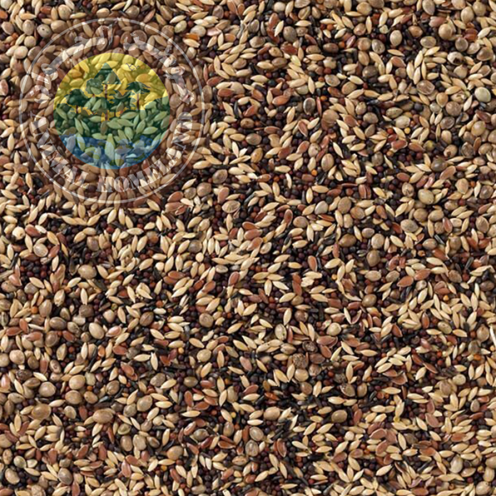 الدخن الأصفر، بذور الكناري، بذور النيجر، القمح، الدخن الأبيض، الشوفان المقشر ، القمح، القرطم، بذر الكتان، الحنطة السوداء، الأرز، الدخن الأحمر.