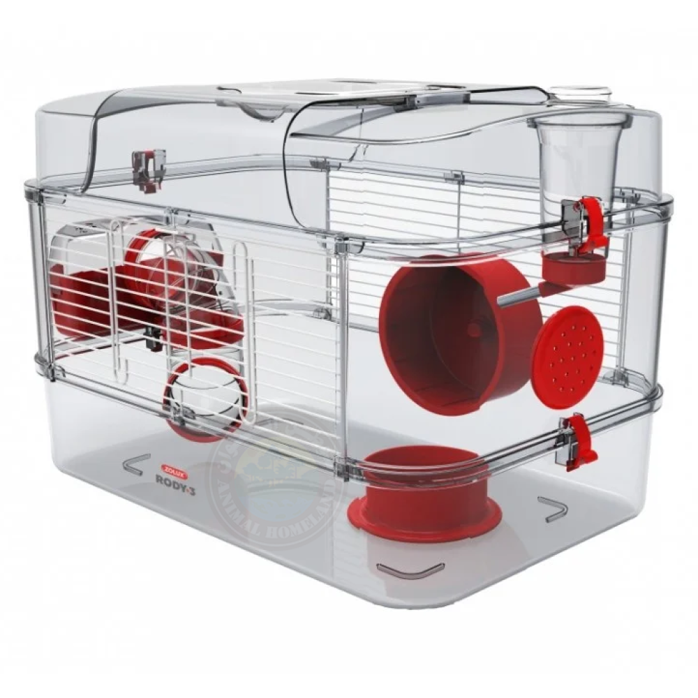 زولكس رودي 3 سولو بطابق واحد للهامستر والشانشيلا والفئران الصغيرة والقوارض، مجهز بالكامل مع ملحقات التغذية ودهاليز اللعب والمرح، يتميز بشكل شفاف حتى يسمح للمربي برؤية ومراقبة الحيوان بشكل دائم.