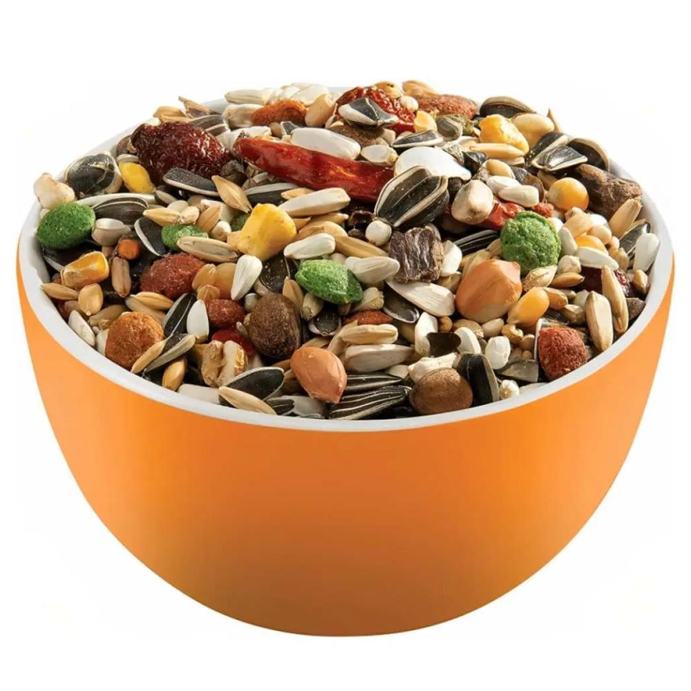 Striped Sunflower Seeds, White Sunflower Seeds, Oats, Safflower, Maxi Fam Kernels, Broken Rice, Wheat, Corn, Buckwheat, Barley, Hulled Peanuts, Pumpkin Seeds, Dare, Rice Nut, Carob, Canary Seed, Milo, Wheat Puffed, yellow millet oyster, popcorn, rosehip, red pepper.